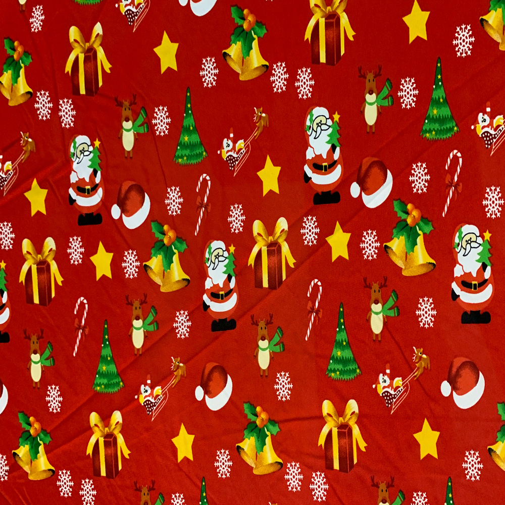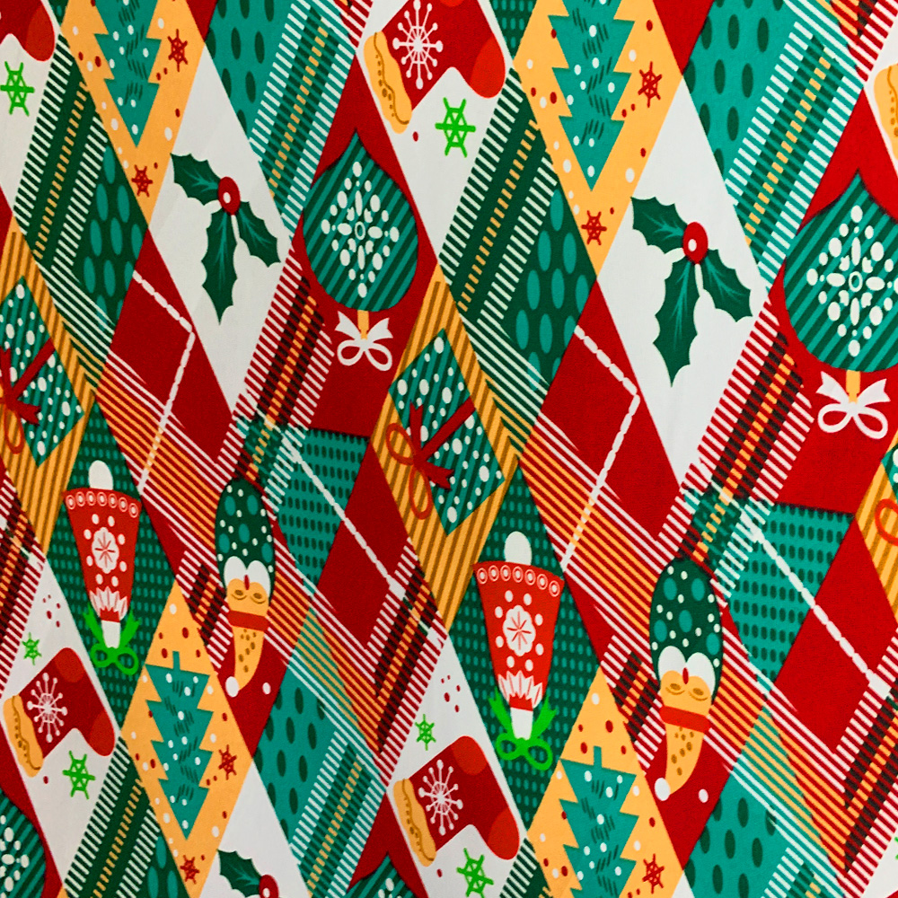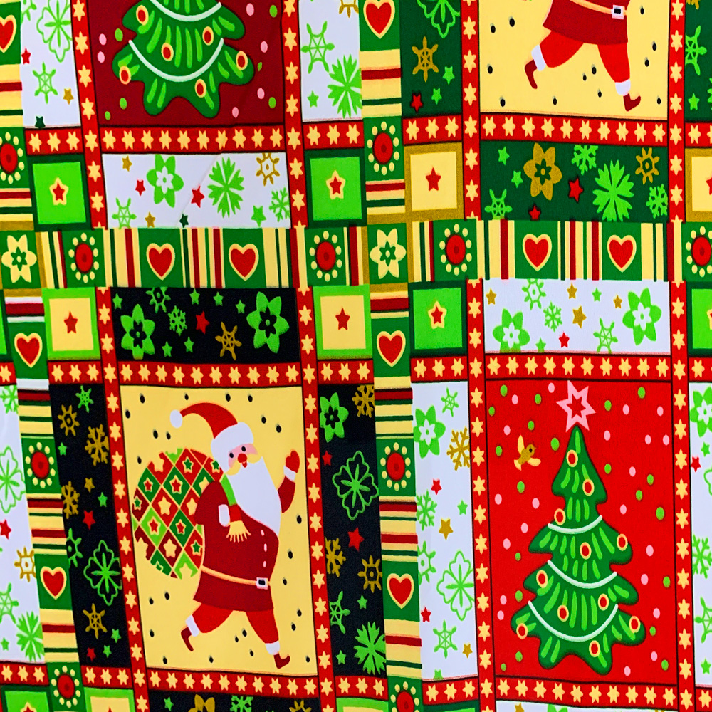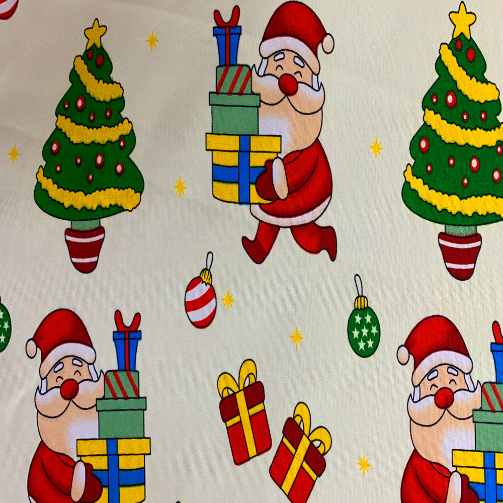 Telas navideñas de alta calidad con diseños festivos, perfectas para decoración y proyectos creativos en Navidad.